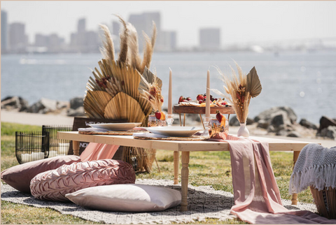 This package includes a luxurious bohemian picnic setup for two or up to six with a charcuterie board. Set up and clean up included! Add-ons available.